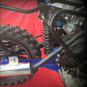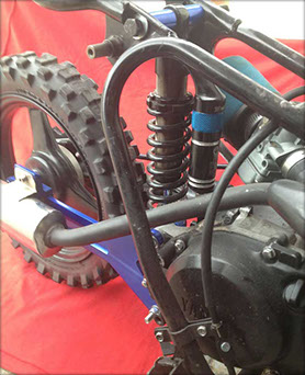 TOP END MACHINE PW50 Single Shock Rear Suspension Kit is a performance upgrade to your PW50. It creates a new performance dimension by providing a whole new feel in suspension feel just like the characteristic of a full size motocross bike. The best quality and performance available for PW50s. CNC aluminum swing arm and shock mounts one inch longer then stock. Nitrogen charged oil dampened fully adjustable piggy back reservoir rear shock designed for PW50 stock frame. Adjustable spring pre-load, adjustable rebound and adjustable compression make this the ideal choice of rear suspension for all types of riders weights and ability.