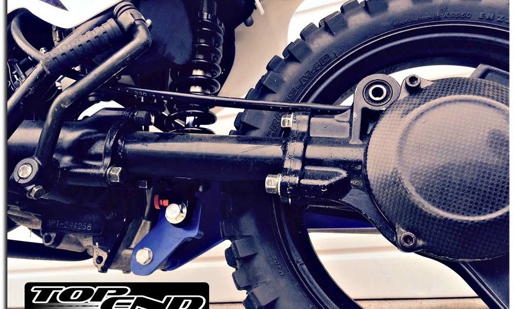 The TOP END MACHINE PW50 Single Shock Rear Suspension Kit is a performance upgrade to your PW50. It creates a new performance dimension by providing a whole new feel in suspension feel just like the characteristic of a full size motocross bike. The best quality and performance available for PW50s. CNC aluminum swing arm and shock mounts one inch longer then stock. Nitrogen charged oil dampened fully adjustable piggy back reservoir rear shock designed for PW50 stock frame. Adjustable spring pre-load, adjustable rebound and adjustable compression make this the ideal choice of rear suspension for all types of riders weights and ability.