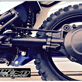 TOP END MACHINE PW50 Single Shock Rear Suspension Kit is a performance upgrade to your PW50. It creates a new performance dimension by providing a whole new feel in suspension feel just like the characteristic of a full size motocross bike. The best quality and performance available for PW50s. CNC aluminum swing arm and shock mounts one inch longer then stock. Nitrogen charged oil dampened fully adjustable piggy back reservoir rear shock designed for PW50 stock frame. Adjustable spring pre-load, adjustable rebound and adjustable compression make this the ideal choice of rear suspension for all types of riders weights and ability.
